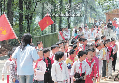 昨日,武漢市洪山區(qū)九峰鄉(xiāng)1700多名小學(xué)生興高采烈地來到武漢九峰鄉(xiāng)森林動物園,參加別開生面的慶“六一”活動。孩子們在“人·動物·未來”百米長卷上簽名,以表示愛綠色家園,創(chuàng)美好明天的決心。這是孩子們游園的情景。