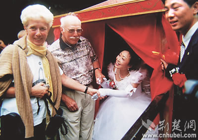 一家民居客棧內,美國攝影師約翰·雅格與相戀十多年的日本女朋友在嗩吶聲的祝福中,共拜天地……