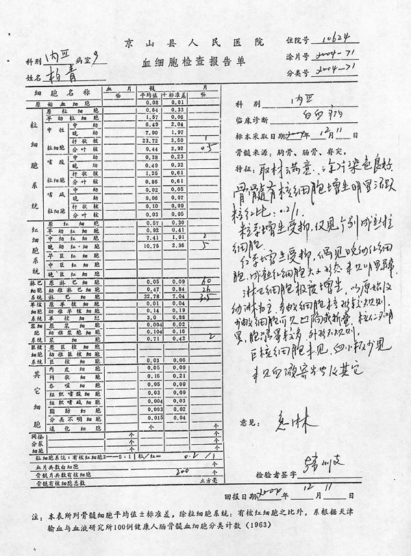 楊青血細胞檢查報告單(圖)