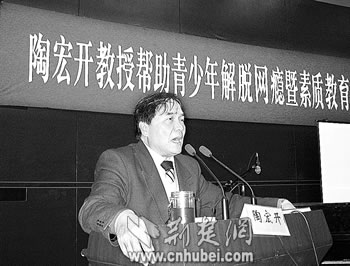 一襲并不時(shí)尚的米色風(fēng)衣,一套普通的深色西裝,中等身材,高額闊臉,面色健康,頭發(fā)略有花白?烊丝煺Z(yǔ),不時(shí)夾雜幾句“Yes”“No”,講到激動(dòng)處有些口吃。這便是“青少年網(wǎng)絡(luò)愛(ài)心大使”、59歲的華中師范大學(xué)特聘教授陶宏開。從間接了解,到直接接觸,從報(bào)告會(huì)、座談會(huì),到面對(duì)面采訪,連日來(lái),記者就這樣走近陶宏開——