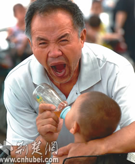 在鄒醫(yī)生的診所里,坐著一個(gè)打點(diǎn)滴的病人!岸际峭k姾Φ模∵@么熱,我哪躺得下!”他苦笑著。鄒醫(yī)生不時(shí)站起來(lái),為幾個(gè)病人換頭上的濕毛巾。
