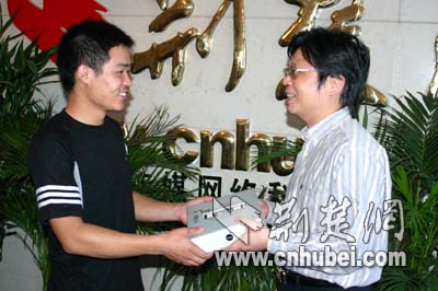 荊楚網(wǎng)副總編輯黃斌給武漢的陳先生頒發(fā)獎(jiǎng)品