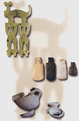 陶罐及殘口沿:盛器(下,最大者高14厘米)[相關鏈接]:20世紀中國百項考古大發(fā)現(xiàn)(1-20)21、大溪遺址(圖)22、城頭山遺址(圖)23、屈家?guī)X遺址(圖)24、崧澤遺址(圖)25、馬家窯遺址(圖)26、柳灣墓地(圖)27、牛河梁遺址(圖)28、城子崖遺址(圖)29、良渚文化遺址群(圖)30、石家河遺址群(圖)31、陶寺遺址(圖) 32、王城崗遺址(圖)33、齊家坪遺址(圖)34、卡若遺址(圖)35、石峽遺址(圖) 36、東灣仔北遺址(圖)37、圓山遺址(圖)38、二里頭遺址(圖)39、東下馮遺址(圖)40、夏家店遺址(圖)