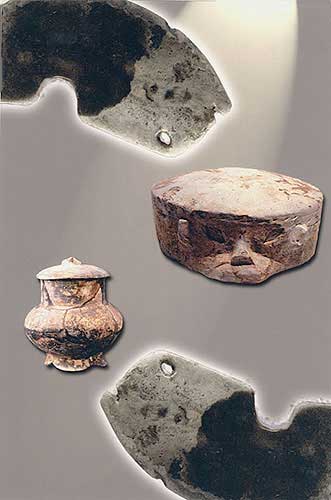 魚鳥形玉璜:裝飾品(上、下,長6.6厘米)[相關(guān)鏈接]:20世紀(jì)中國百項(xiàng)考古大發(fā)現(xiàn)(1-20)21、大溪遺址(圖)22、城頭山遺址(圖)23、屈家?guī)X遺址(圖)24、崧澤遺址(圖)25、馬家窯遺址(圖)26、柳灣墓地(圖)27、牛河梁遺址(圖)28、城子崖遺址(圖)29、良渚文化遺址群(圖)30、石家河遺址群(圖)31、陶寺遺址(圖) 32、王城崗遺址(圖)33、齊家坪遺址(圖)34、卡若遺址(圖)35、石峽遺址(圖) 36、東灣仔北遺址(圖)37、圓山遺址(圖)38、二里頭遺址(圖)39、東下馮遺址(圖)40、夏家店遺址(圖)