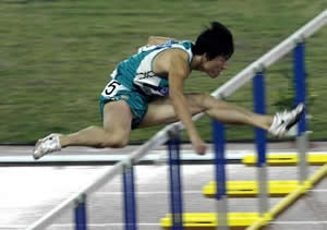 十運會田徑比賽最精彩的大戲10月20日在奧體中心田徑場進行,奧運冠軍劉翔在萬眾矚目之中,以13秒10的好成績毫無懸念地奪得冠軍,這是他在全運會中的第二次奪冠,也是他今年在國內(nèi)比賽中的第二好成績。(圖片來自新浪體育)