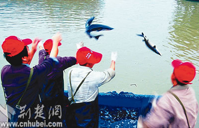 每年都向長江投放大量人工繁育的幼鱘。湖北日報記者楊平攝