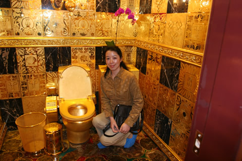 在2002年版的《吉尼斯世界紀(jì)錄》上有著這樣一條記錄:“用錢沖洗――世界上最昂貴的衛(wèi)生間由珠寶商林世榮制造,在他的中國香港商店售價(jià)240萬英鎊。它完全由金子和昂貴的珠寶制成。抽水馬桶、洗臉臺、刷子、衛(wèi)生紙盒、鏡框、墻上架設(shè)的吊燈、墻上的瓷磚和門全部都由24K黃金構(gòu)成! “這里有一點(diǎn)寫得不對,我的金廁所決不出售,我還要用它來專門注冊一個(gè)品牌,成為我們企業(yè)的象征。”林世榮在接受記者采訪時(shí),詳細(xì)地解釋了自己對“金廁所”的感情。 現(xiàn)任香港恒豐金業(yè)科技集團(tuán)主席的林世榮說:“整個(gè)金廁所都是由我親自設(shè)計(jì)、監(jiān)督制造的,我甚至在工地呆過整整三天三夜沒有出來,可以說是傾注了極大的心血。很多人可能不了解我為什么會用這么多黃金來建造一個(gè)廁所,其實(shí)我不是為了炫耀,也不是喜歡奢侈浪費(fèi),我是在完成一個(gè)心愿。把土變成金了不起,把金變成土同樣了不起。”