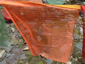 西藏有隨處可見的掛在山頂山口、江畔河邊道旁以及寺廟等各處被認為有靈氣地方的五彩經(jīng)幡。之所以被稱作經(jīng)幡,是因為這些幡上面都印有佛經(jīng),在信奉藏傳佛教的人們看來,隨風(fēng)而舞的經(jīng)幡飄動一下,就是誦經(jīng)一次,在不停地向神傳達人的愿望,祈求神的庇佑。這樣,經(jīng)幡便成為連接神與人的紐帶。風(fēng)幡所在即意味著神靈所在,也意味著人們對神靈的祈求所在。風(fēng)幡寄托著人們美好的愿望。