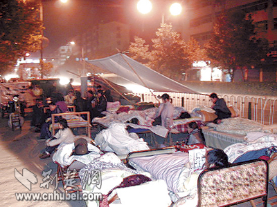 地震發(fā)生后,省委省政府迅速派出兩個(gè)救災(zāi)工作小組分赴武穴市、陽(yáng)新縣和通山縣災(zāi)區(qū)。在工作小組指導(dǎo)下,各受災(zāi)縣市開(kāi)始轉(zhuǎn)移安置受災(zāi)群眾,并迅速開(kāi)展災(zāi)后重建工作。截至昨天上午11時(shí),各縣市倒房戶(hù)、危房戶(hù)以及避震群眾基本轉(zhuǎn)移安置完畢,共有7580名群眾被安置到了親友家、機(jī)關(guān)、學(xué);蚺R時(shí)帳篷中,生活起居安定。其中,武穴市轉(zhuǎn)移安置5600人,陽(yáng)新縣1240人,黃梅縣740人。