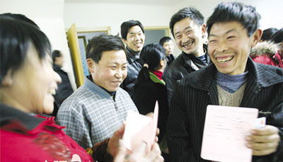 農(nóng)民工昨日領(lǐng)到我市勞動(dòng)部門(mén)預(yù)先墊付的工資。 三峽商報(bào)記者李風(fēng) 攝