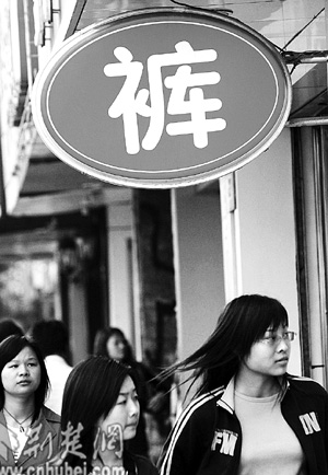 昨日,武漢市江漢路某品牌商店用碩大的“褲”字吸引行人購買欲(圖一)。在市場競爭激烈的今天,“臉面”設計成為商家費勁腦筋追逐的重心,但也有一些商家長期打著“大甩賣”的旗號欺騙消費者,頗煞風景(圖二)。記者 張鴻 攝