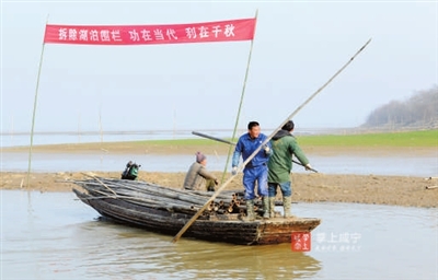 湖邊,“‘兩湖拆圍’,功在當(dāng)代利在千秋”的紅色條幅隨風(fēng)飄蕩。村支書楊繼平看著一派熱火朝天的場面,對(duì)完成村里9700畝“拆圍”任務(wù)信心滿滿。