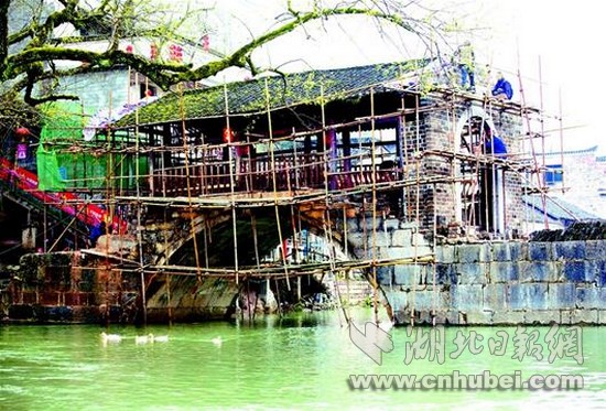 湖北日報訊 21日,工人們正在對咸寧市咸安區(qū)劉家橋古建筑風雨橋進行修繕。劉家橋古民居群始建于明成化9年,建筑群總面積達3.5萬平方米,被譽為“楚天民俗第一村”。修繕工程工期6個月,采用傳統(tǒng)工藝進行修復,以求最大程度地恢復古民居原貌。