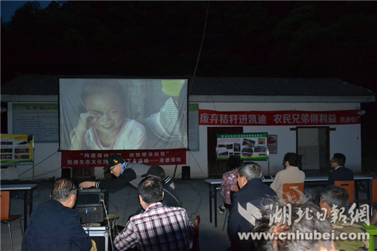 當(dāng)晚,在電影開始前播放了由陽光凱迪新能源集團提供的秸桿回收與利用宣傳片,讓農(nóng)民朋友了解產(chǎn)業(yè)開發(fā)“變廢為寶”帶來的收益,播放了由赤壁市普法工作辦公室拍攝制作的《留守兒童》公益廣告片和邵陽花鼓戲《兒大女大》,現(xiàn)場還發(fā)放了由省扶貧辦編印的《扶貧到戶,畫說政策》宣傳手冊、秸桿回收利用好處多等資料,讓廣大農(nóng)民群眾進一步了解黨和政府的扶貧政策,真正享受到政策的好處。電影下鄉(xiāng)活動猶如一道文化大餐,不僅給群眾送去歡樂,而且還豐富了人民群眾的業(yè)余文化生活。