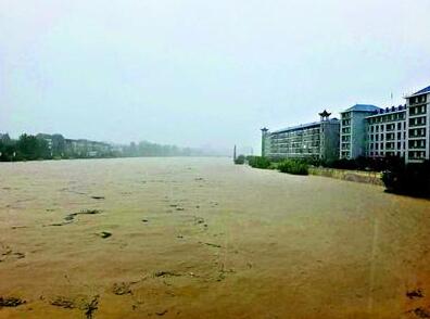圖為:雋水河崇陽(yáng)縣城段河水陡漲