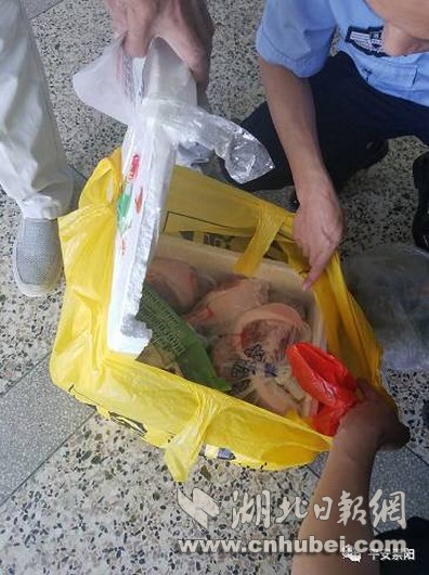 7日上午,崇陽(yáng)縣天城鎮(zhèn)居民李師傅在該鎮(zhèn)下津大道路邊撿到一個(gè)白色包裹,送到崇陽(yáng)縣公安局經(jīng)濟(jì)開發(fā)區(qū)派出所。為了找到包裹的主人,所長(zhǎng)童鵬飛打開了包裹尋找線索,里面有豬肉、干筍等物品,還有一封信。