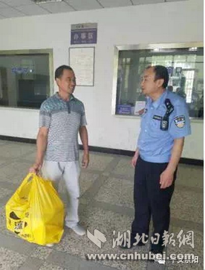 圖為民警們將包裹交還給錦瑩的爺爺老陳