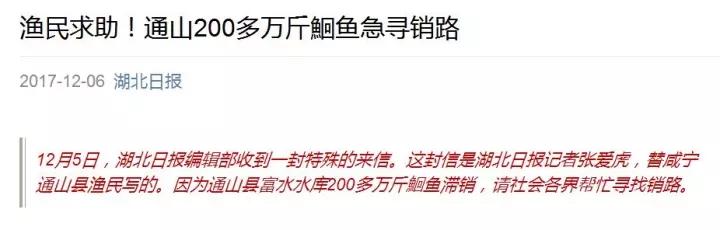 這則題為《漁民求助!通山200多萬斤鮰魚急尋銷路》的新聞,源自湖北日?qǐng)?bào)微信公眾號(hào)(ID:hubeiribao181)。