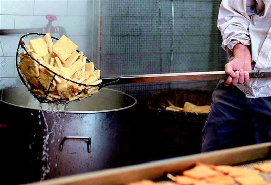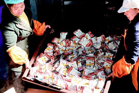 湖北日報訊 通城麥?zhǔn)械穆槔备勺悦鞒家褌鞒形灏儆嗄甑臍v史,從民間傳統(tǒng)手工制作到現(xiàn)代流水線生產(chǎn),如今已形成了一定的規(guī)模。制作的原材料包括黃豆、香料、食鹽、雞精、辣椒油等,在保證傳統(tǒng)豆制品高營養(yǎng)的同時,運用了特殊的鹵制技術(shù),融色香、味美、辣、脆于一體。其濃郁的農(nóng)家風(fēng)味成為大街小巷的一大特色小吃,熱銷廣東、浙江、江西及湖北各地。(視界網(wǎng) 劉建平 攝)