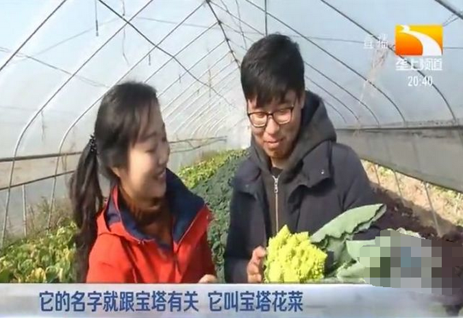咸寧市嘉魚縣新街鎮(zhèn)馬鞍山村種植戶王亮告訴記者,它頭上尖尖的,很像寶塔,而它的名字就跟寶塔有關,叫寶塔花菜,它是從歐洲荷蘭進口來的,市面上見不到,是進口貨。