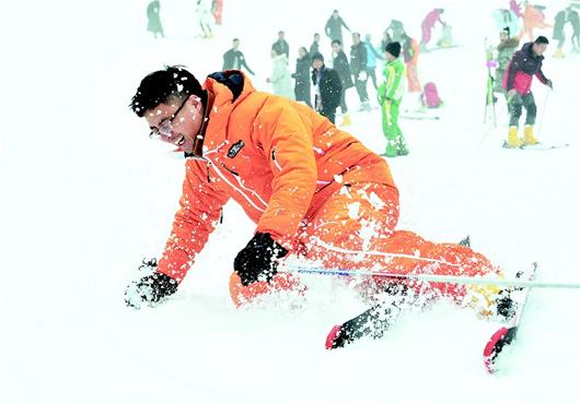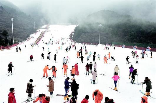 圖為:九宮山滑雪場完成升級改造后,吸引眾多游客滑雪。