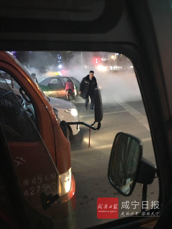 咸寧新聞網(wǎng)訊(香城都市報(bào)記者程統(tǒng) 通訊員李發(fā)揚(yáng))2月11日傍晚,城區(qū)咸寧大道與銀泉大道十字路口,一輛出租車起火。恰巧,一公司班車行經(jīng)此處,駕駛員葛宏斌見狀,立即下車,提著車上的滅火器跑到出租車邊,將火熄滅。