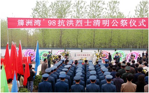 為紀(jì)念“抗洪英雄”高建成等19位烈士興建的“抗洪烈士陵園”、“抗洪烈士紀(jì)念碑”,位于中堡村境內(nèi),距簰洲灣潰口處約1千米,占地8畝,1999年2月興建,1999年7月落成。正面居中而立,是抗洪英雄高建成烈士墓,其余十八位烈士墓,居左九位,居右九位,略呈弧形整齊排列。十九座烈士墓均為花崗巖基座,大理石墓碑,上面鑲嵌英雄遺像,鐫刻著英雄的名字和生卒年份,碑石背面銘記其簡略生平事跡。