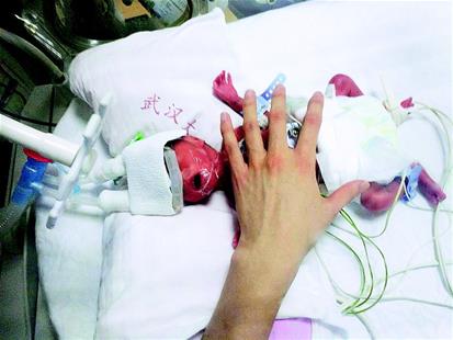 當(dāng)晚,圓圓降生??伤挥谐扇税驼拼笮。w重810克,身長(zhǎng)32厘米,屬于“超低出生體重兒”“超早產(chǎn)兒”。她的皮膚呈青灰色,沒(méi)有呼吸和反應(yīng),只有不規(guī)則的、微弱的心跳。