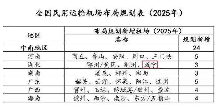 此前發(fā)布的《中國民用航空發(fā)展第十三個五年規(guī)劃》中,湖北省有兩個新建機(jī)場項目,分別是荊州、鄂州/黃岡機(jī)場,此次,咸寧機(jī)場成功擠入支線機(jī)場建設(shè)規(guī)劃。