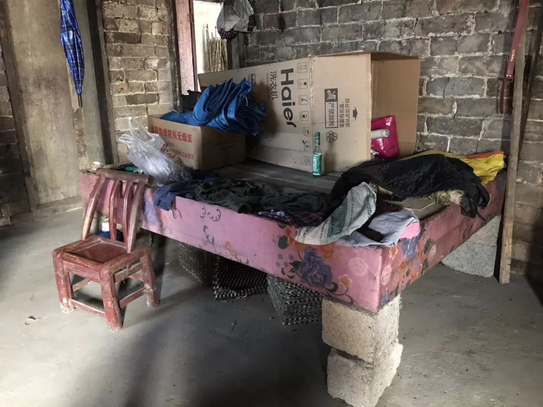 汪小英家是緊鄰公路的一棟老瓦屋,屋旁就是稻田,屋頂有些破漏。余明梁戴著腳鐐手銬,拖著沉重的腳步,一步一步走進老屋。他邊走邊抬頭看了看,他指著天井左側(cè)廂房說:“就是這間……”然后說不出話來。