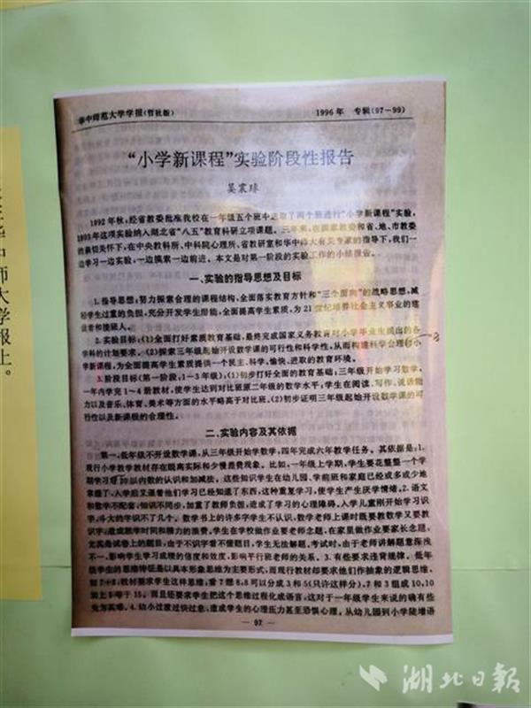 1992年秋,時任赤壁市實驗小學校長的吳震球從一年級五個班中選取兩個班進行“小學新課程”實驗,從三年級開始學數(shù)學,此項實驗還曾納入我省“八五”教育科研立項課題。1998年小學畢業(yè)考試,實驗班學生數(shù)學平均分高于普通班3-5分。但由于人事變動,當年的實驗并未結(jié)題,此項實驗也無疾而終。