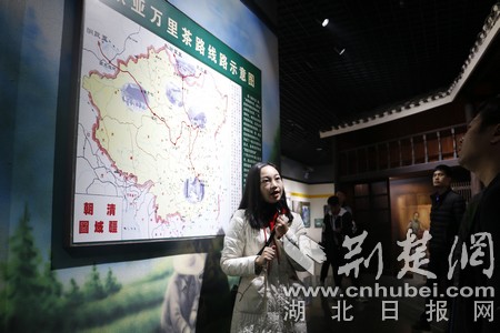 金牌講解員正在向采風(fēng)團(tuán)成員講解萬里茶道路線。(采訪團(tuán)成員供圖)
