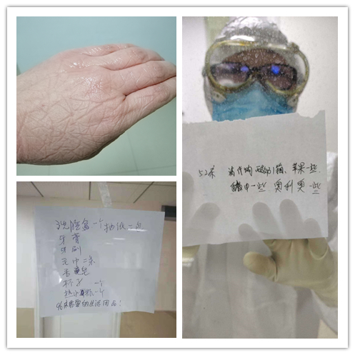 他們負(fù)責(zé)隔離患者的日常治療和護(hù)理,每天6個(gè)小時(shí)一次的輪班,穿上隔離服,她們就進(jìn)入緊張而有序的工作狀態(tài)。因?yàn)榇⒚摳綦x服有著嚴(yán)格的操作流程和要求,所以不能夠喝水,穿著隔離服不方便上廁所。每天她們要做多種檢測和病情的記錄,身心處于高度戒備狀態(tài)的同時(shí),還必須時(shí)刻密切關(guān)注病患的心理變化,安撫病患的情緒。