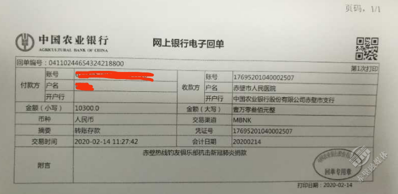 為罹患白血病患者募捐、積極參加各類公益活動……童志明每次在赤壁釣友俱樂部微信群里發(fā)起的倡議,都能得到迅速響應(yīng)。這次也沒例外,短短幾天就募集資金10300元。2月14日,趕在寒潮之前,老童把善款匯入醫(yī)院賬戶,希望能為醫(yī)護(hù)人員帶來一些溫暖。