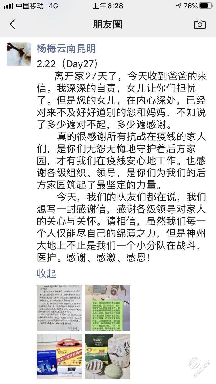 這樣一個(gè)團(tuán)隊(duì),只是無(wú)數(shù)個(gè)同樣戰(zhàn)斗在抗疫一線的湖北醫(yī)護(hù)的縮影,是無(wú)數(shù)個(gè)“前方有你,后方有我”的展現(xiàn)。作為一個(gè)和他們一起奮戰(zhàn)了28天的云南醫(yī)療隊(duì)隊(duì)員,我更能見(jiàn)證湖北的醫(yī)護(hù)人員第一時(shí)間的擔(dān)當(dāng),體會(huì)到他們后方家園默默的陪伴與支持。