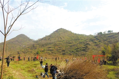 3月11日,通城縣直機(jī)關(guān)單位部分干部,戴著口罩開展義務(wù)植樹活動。