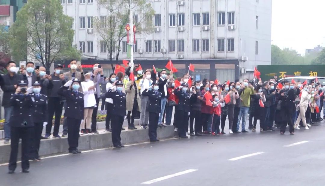 沿途,“千里逆行助崇陽 平平安安回家鄉(xiāng)”“風雨與共 守望相助 攜手奮戰(zhàn) 感恩有你” “云南援崇醫(yī)療隊醫(yī)護人員恩情 崇陽人民永久于心”等紅色條幅分外鮮艷,街道兩旁的群眾揮舞著國旗,為支援崇陽的云南醫(yī)療隊送別。人群中,“謝謝白衣天使”“英雄一路順風”的聲浪此起彼伏,群眾用最真誠樸實的話語表達了對白衣天使們由衷地感謝。