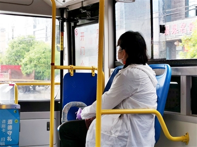 “請(qǐng)出示綠色健康碼,這個(gè)是規(guī)定,希望大家配合。”25日,楓丹公交監(jiān)督員王大姐戴著口罩,手里拿著本子和筆,坐在離車門最近的座位,逐一查看乘客登記情況。按照往常,每輛公交車只有一個(gè)司機(jī)師傅,乘客買票上車即可。但現(xiàn)在是防疫的特殊時(shí)期,不能大意。每輛公交除了司機(jī)師傅, 還會(huì)有一位像王大姐這樣的監(jiān)督員,實(shí)時(shí)值守“安全關(guān)卡”。