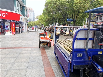 60多歲的李爹爹常年開著三輪車在城區(qū)各處賣水果,這幾天在賣甘蔗,在小區(qū)門口賣了一會(huì)兒后他又來到中商百貨附近。李爹爹說,現(xiàn)在街上人少,生意沒有以往好。
