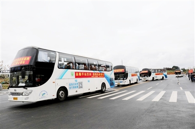 3月30日上午9時30分,在通山縣文體中心,12輛 “點(diǎn)對點(diǎn)、一站式”輸送返“粵”務(wù)工人員的愛心大巴專車,載著320名務(wù)工人員一路向南,前往深圳等地返崗復(fù)工,這是目前咸寧市人數(shù)最多的一次“點(diǎn)對點(diǎn)”輸送。