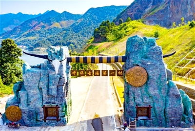 瑤祖故里大觀園內(nèi),古瑤壘石門樓,蘊(yùn)天地靈氣,攬關(guān)山萬重。天然青石壘砌的梯形門樓,古色古香,錯(cuò)落有致。