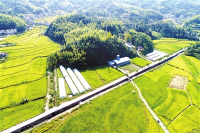 雞打工鴨耘禾 荒田育出有機(jī)稻 車上高峰村,眼前村舍儼然,禾苗翠綠,成群的鴨子嬉戲在禾苗間。