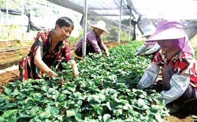 “以前家里較為貧困,現(xiàn)在家門口打工,一個月的收入就有3000元,日子越過越好了?!贝迕裎捍淙A在熊家灣草莓基地里樂呵呵地對記者說,臉上滿是幸福。