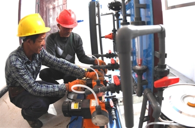 20日,通山縣黃沙鋪鎮(zhèn)萬家水廠,技術員在對設備進行調試。
