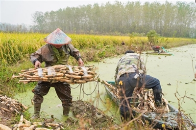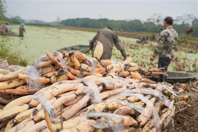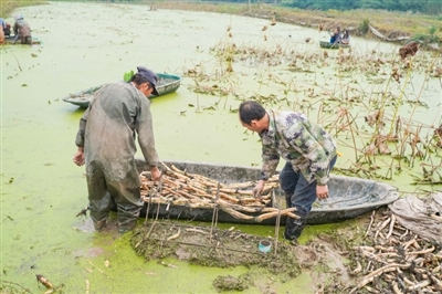 10月26日,嘉魚縣陸溪鎮(zhèn)界石村鴨兒湖養(yǎng)殖專業(yè)合作社里,負(fù)責(zé)人龔木前正和工人們一起忙著挖藕、稱重、清洗、包裝。龔木前是一名退役軍人,2009年,龔木前從部隊轉(zhuǎn)業(yè)后回鄉(xiāng)創(chuàng)業(yè),承包了村里50畝荒湖種野藕。經(jīng)過幾年時間的發(fā)展,他成立了農(nóng)業(yè)合作社,把藕塘面積擴(kuò)大到300多畝。近些年,通過他的努力,他家的野藕通過電商遠(yuǎn)銷全國各地,高峰期時,每天可以接到200余張訂單。 通訊員 耿海軍 杜瑞 攝