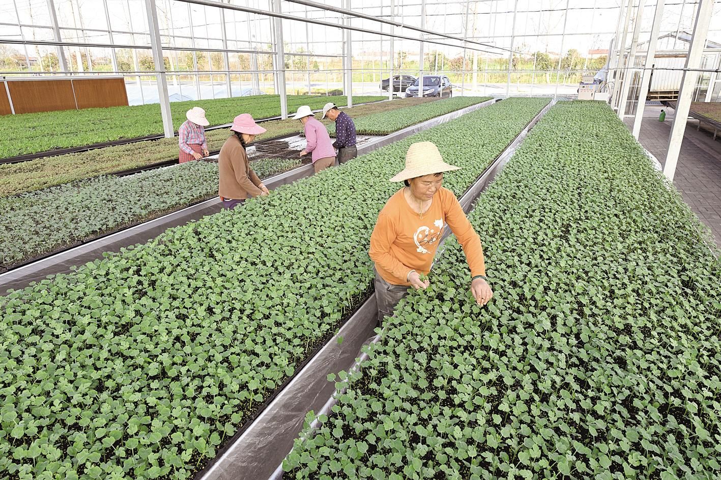 赤壁市赤壁鎮(zhèn)東柳村投資320萬(wàn)元建成智能溫控育苗大棚,2月20日,村民正對(duì)無(wú)土培育的西瓜秧苗進(jìn)行管護(hù)。大棚西瓜種植是該村的農(nóng)業(yè)招牌。據(jù)悉,赤壁市按“一村一品”“一鎮(zhèn)一業(yè)”布局現(xiàn)代農(nóng)業(yè),已培育市級(jí)以上“一村一品”特色產(chǎn)業(yè)示范村132個(gè)。(湖北日?qǐng)?bào)全媒記者 陳勇 通訊員 童金健 但唐靜 攝)