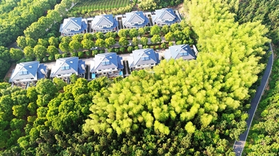 鳥瞰嘉魚縣官橋鎮(zhèn)八組,水波瀲滟的南湖、北湖盡收眼底,讓人賞心悅目;一棟棟造型別致的農(nóng)民別墅,鑲嵌在綠茵叢中,使人艷羨不已……