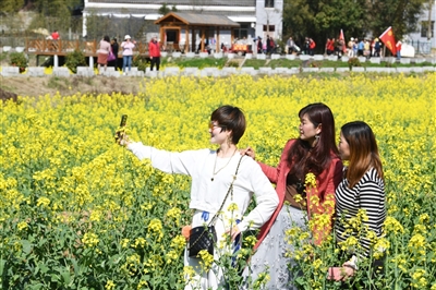 吳秀琴是曾鋪村十組村民,一家人正商量如何接待游玩的游客,而她家正好在花海景點的入口處?!叭ツ晡壹业?畝油菜產(chǎn)了1200斤左右的菜籽,賺了一萬多元。”吳秀琴高興地說:“今年準(zhǔn)備開農(nóng)家樂,再賣點臘魚臘肉,多掙點錢!”在賞花的過程中,附近的農(nóng)家樂生意也非常火爆,很多村民在景點處擺攤賣起了自家的農(nóng)產(chǎn)品,使游客盡興而來,滿載而歸。