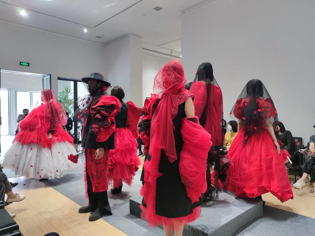 服裝動(dòng)態(tài)秀展演結(jié)束后,江漢大學(xué)2021年應(yīng)屆畢業(yè)生代表給服裝系專業(yè)老師舉行了獻(xiàn)花儀式?;顒?dòng)現(xiàn)場(chǎng)來自社會(huì)各界、兄弟院校、各大企業(yè)及江漢大學(xué)師生代表300余人參加了開幕式展演活動(dòng)。