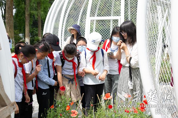 在武漢植物園本草園的西側(cè)的活體罌粟展示區(qū),五個白色的罌粟果實(shí)狀籠子格外顯眼。活動現(xiàn)場,湖北省禁毒委員會、武漢植物園和梅苑學(xué)校師生代表一起為活體罌粟展示區(qū)改造工程揭幕,標(biāo)志著武漢植物園禁毒科普教育基地重新開園。